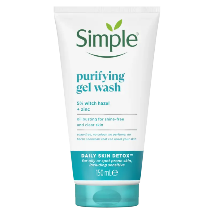ژل شستشوی Simple Purifying Gel Wash یکی از محصولات شاخص برند انگلیسی سیمپل برای پاکسازی عمقی پوستهای چرب، مختلط و مستعد جوش است. این ژل با فرمول جدید Daily Skin Detox حاوی ۵٪ عصاره فندق افسونگر (Witch Hazel) و زینک (Zinc) است که به کنترل ترشح چربی اضافه و جلوگیری از بروز جوش کمک میکند.