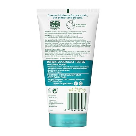ژل شستشوی صورت Simple Purifying Gel Wash به لطف ترکیب طبیعی زینک و فندق افسونگر قادر است چربی اضافی پوست را کنترل و در عین حال پوست را نرم و خنک نگه دارد. فرمول فاقد صابون و مواد تحریککننده باعث شده این شوینده برای پوستهای حساس نیز قابل استفاده باشد. از نظر سئو، تمرکز متن بر کلیدواژههای «ژل شستشوی سیمپل آبی»، «شوینده پوست چرب»، «کنترل کننده چربی و ضد جوش»، و «Simple Purifying Gel Wash اصل انگلستان» باعث افزایش دیدهشدن محصول در نتایج جستوجوی گوگل میشود.