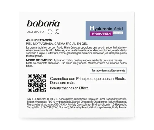 ژل کرم آبرسان باباریا حاوی هیالورونیک اسید مدل HydraFresh مناسب پوست چرب و مختلط