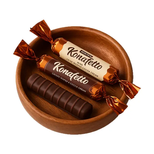 نوع محصول: ویفر لولهای ترد پوشیده شده با شکلات و کرم نرم شکلاتی