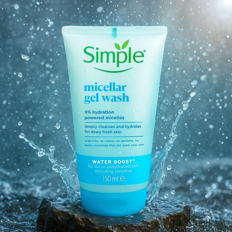 ژل شستوشوی صورت سیمپل مدل واتر بوست Simple Micellar Gel Wash مناسب پوست خشک و دهیدراته ۱۵۰ میل